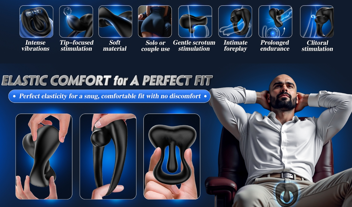 This adjustable cock ring features irresistible lips for intense tip vibrations, while beads provide precise stimulation—driving your partner wildly and turning foreplay into a storm of passion.